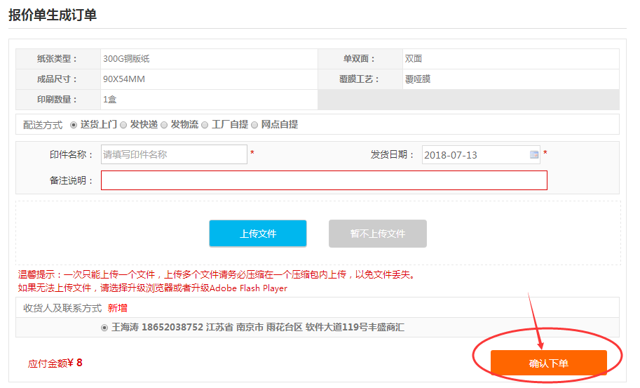 第五步:點擊“我要下單”進入如下圖界面,把相關(guān)資料填寫完畢,把文件上傳, 確認(rèn)后點擊“確認(rèn)下單”即可完成下單。